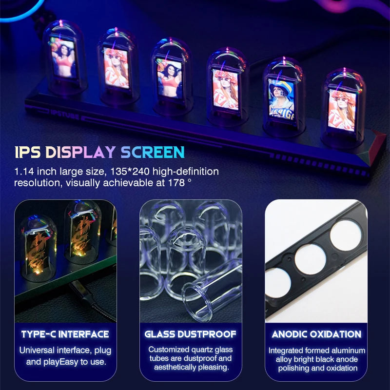 Prepare-se para uma experiência visual hipnotizante que transcende a simples marcação do tempo. A Luminária Tubo Nixie RGB redefine o conceito de relógio, integrando a estética nostálgica dos tubos Nixie com a vibrante tecnologia RGB e um display IPS de alta definição. Mais do que um gadget, é uma declaração de estilo, uma peça de arte dinâmica para o seu espaço.