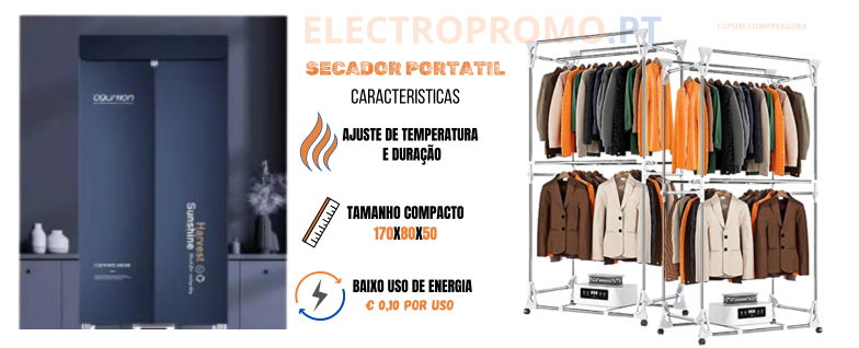 💡 Por que você precisa - Este secador é ideal para:- Secar rapidamente suas roupas em dias úmidos ou frios.- Esterilizar e desinfetar tecidos, garantindo mais proteção para sua família.- Economia de espaço, já que é dobrável e fácil de armazenar.- Qualidade premium com tecnologia eficiente, sem danificar os roupas, mantendo a maciez.