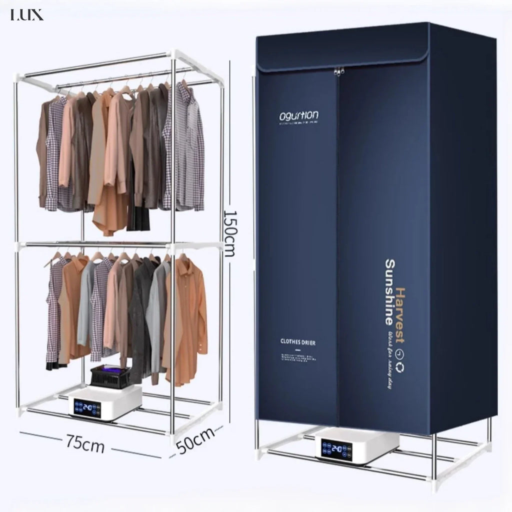 🔧 Como usar - Basta montar o secador, conectar à tomada (220V), posicionar suas roupas e escolher o modo de secagem desejado. Em poucos minutos, suas roupas estarão secas e desinfetadas.